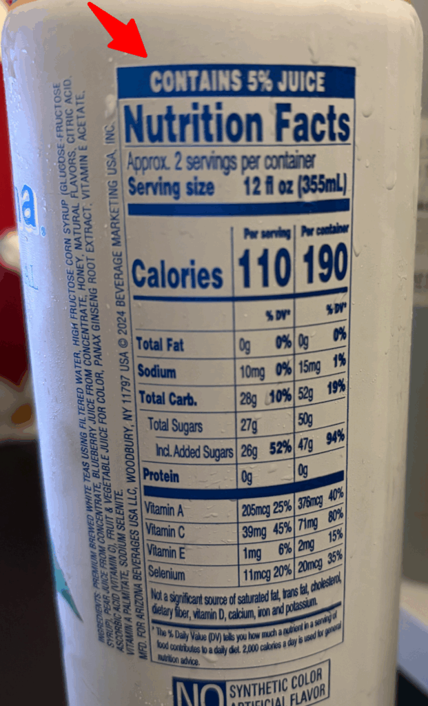So the product contains “100% natural white tea” AND “5% juice”? The math just isn’t mathing.