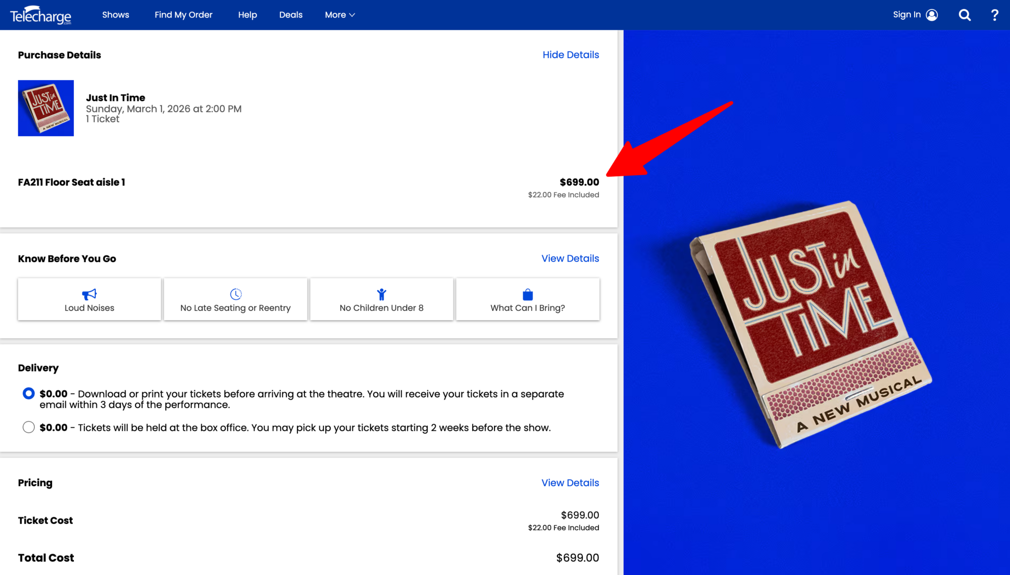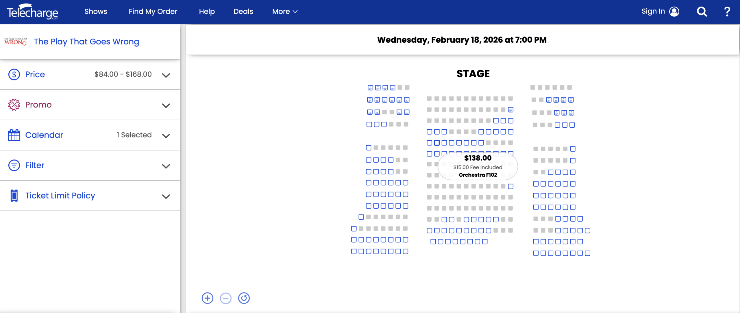 We also found Broadway.com using a different seating chart with an extra row in the orchestra, compared to the seating chart on Telecharge’s website, for an off-Broadway show.