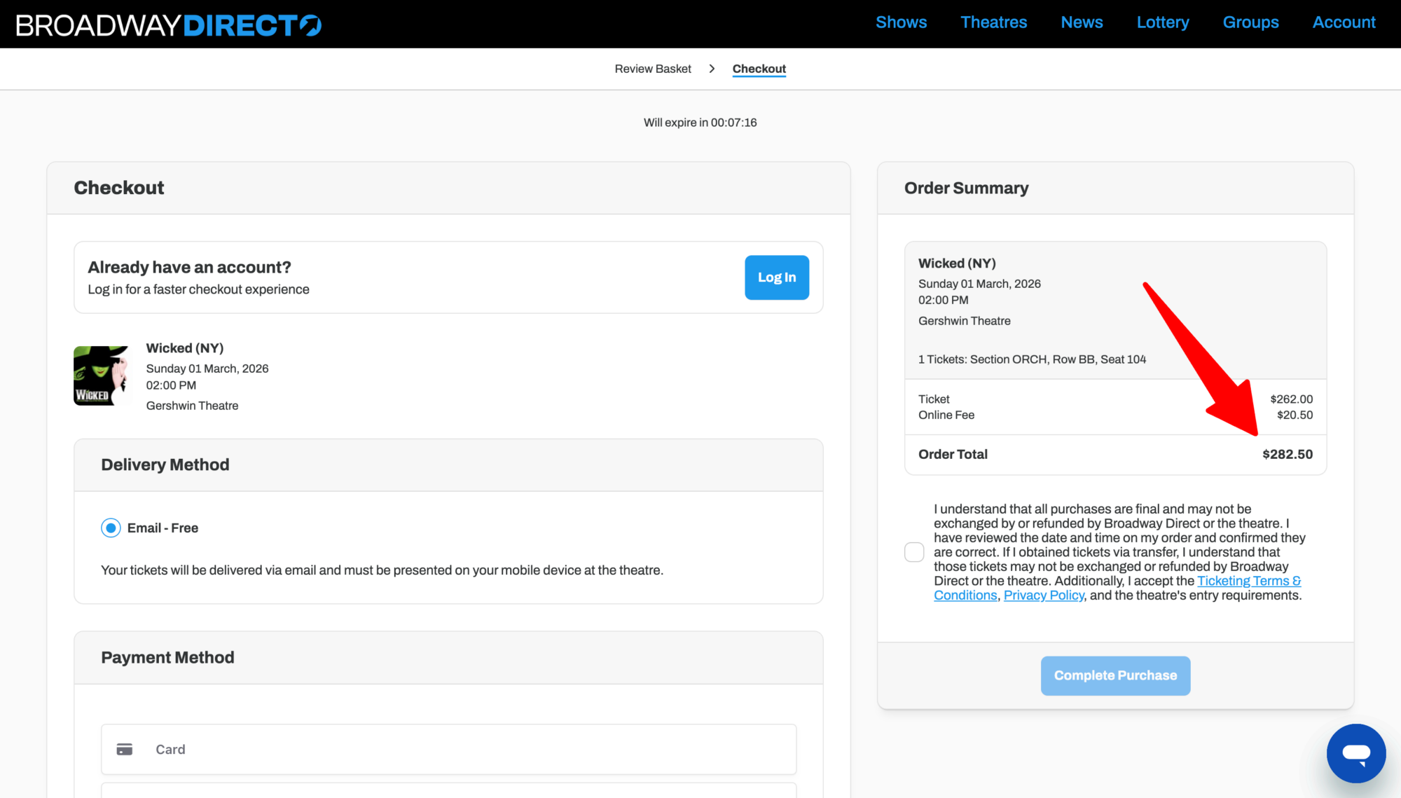 Behind the curtain of this website touting official Broadway status lies a ticket reseller with a high service fee. Consumers looking to purchase Broadway tickets online should go directly through Broadway.org or the website for the show itself to get connected to an authorized ticket vendor.