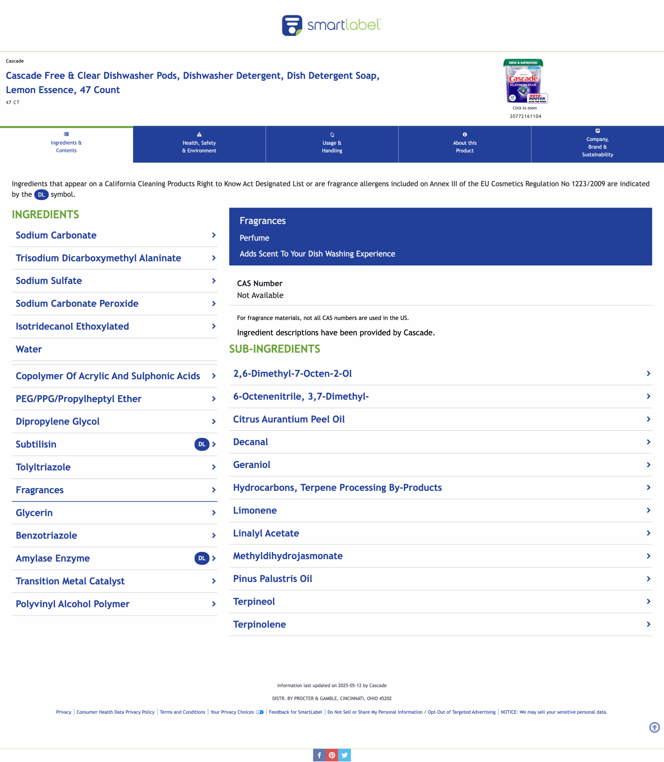 TINA.org reached out to Procter & Gamble, which makes Cascade dish detergents, for comment. We did not hear back.