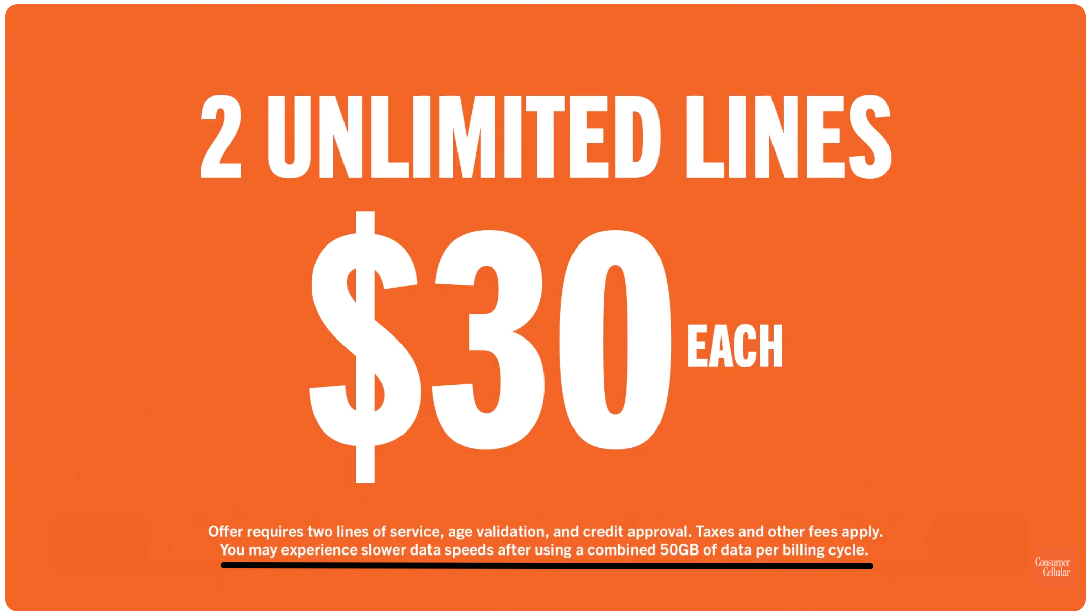 For one, Consumer Cellular clarifies in the fine print of its ad that after using 35GB of data for one line or 50GB of data for two lines, consumers will experience slower speeds.