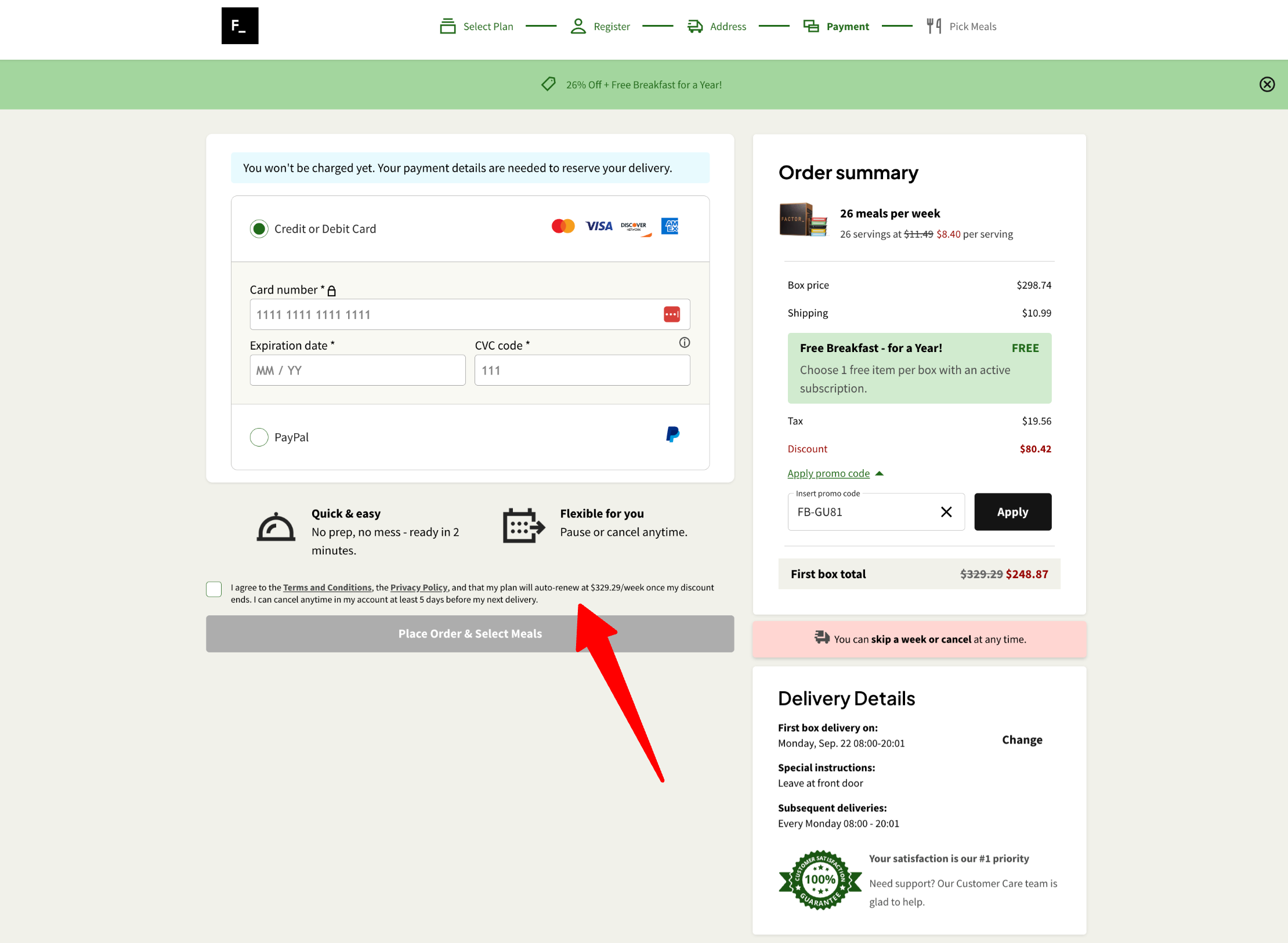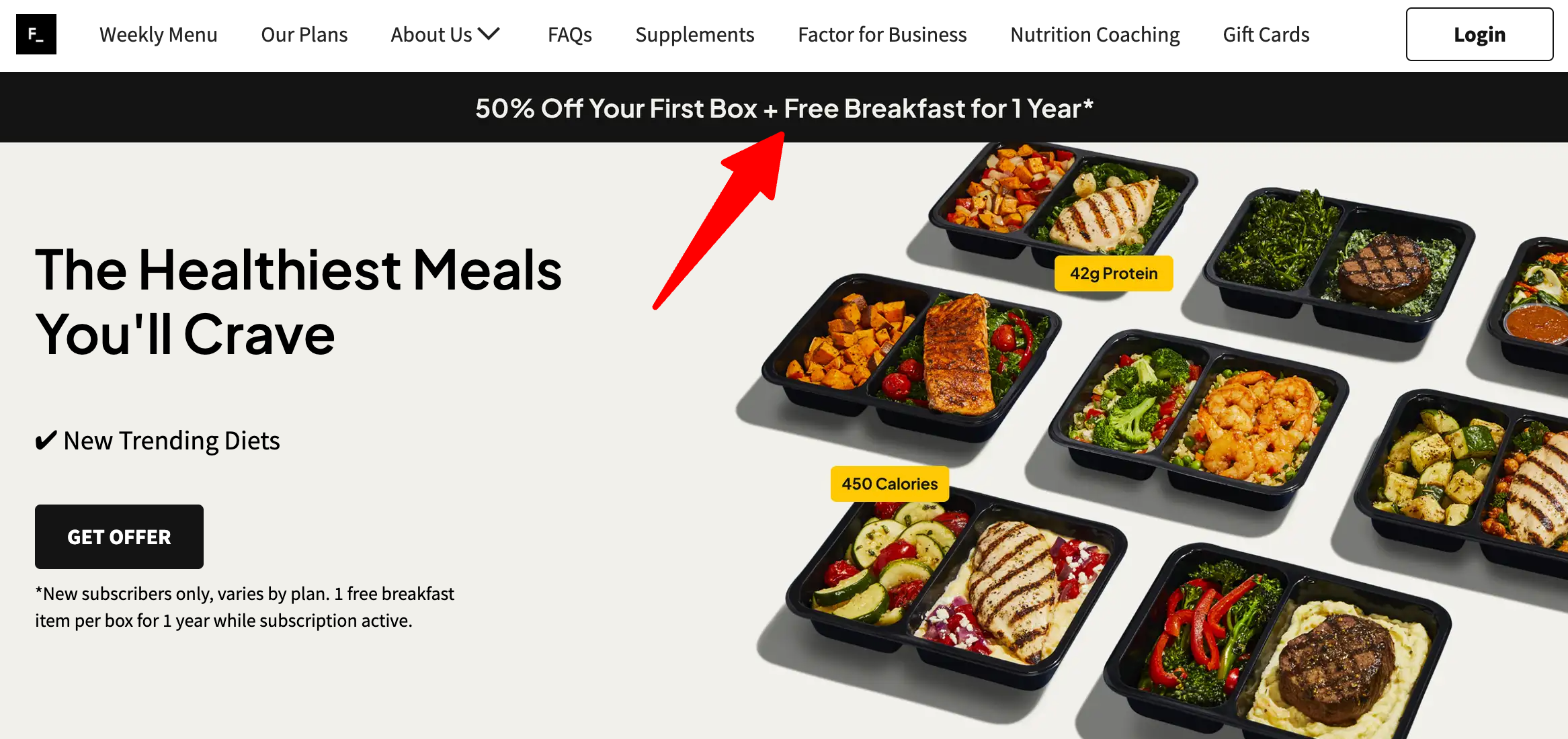 But before you attempt to take advantage of this offer, which comes with “free breakfast for 1 year*,” you may want to factor in some of what TINA.org discovered when we went through the sign-up process on Factor’s website.