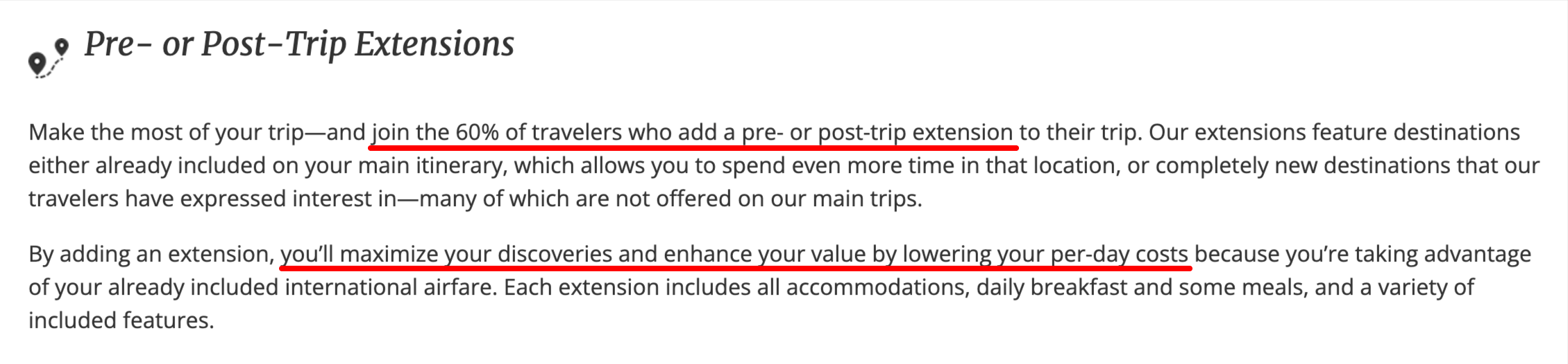 And if you click on “learn more” under the advertised extensions, Grand Circle reiterates that the extension adds four nights.