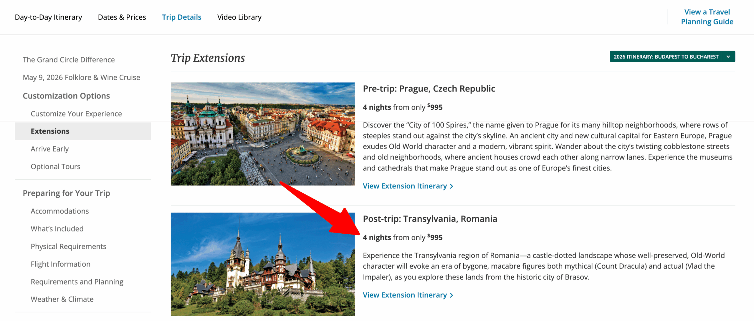 In response to a TINA.org request for comment, a Grand Circle spokesperson said the “structure” of the Transylvania extension is “reflected in the day-by-day activity notes, which is our standard across similar products.”