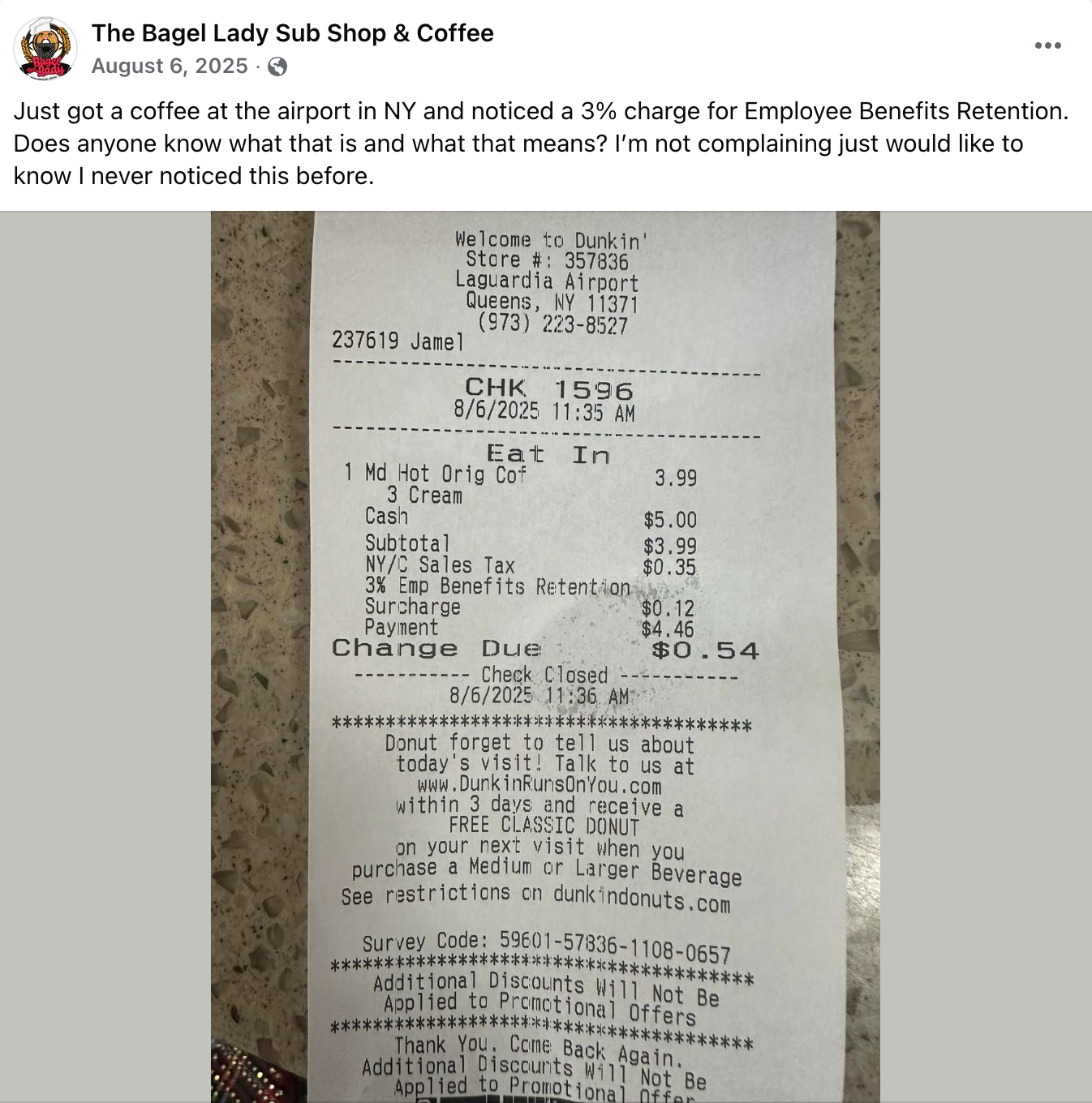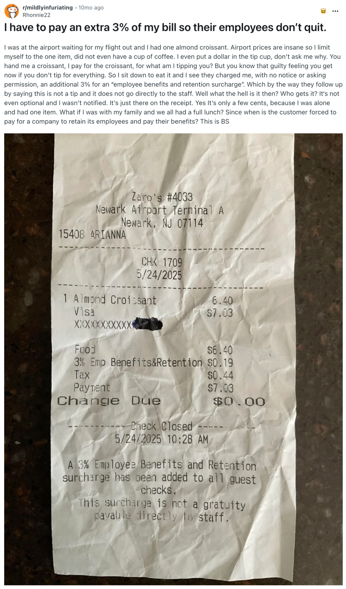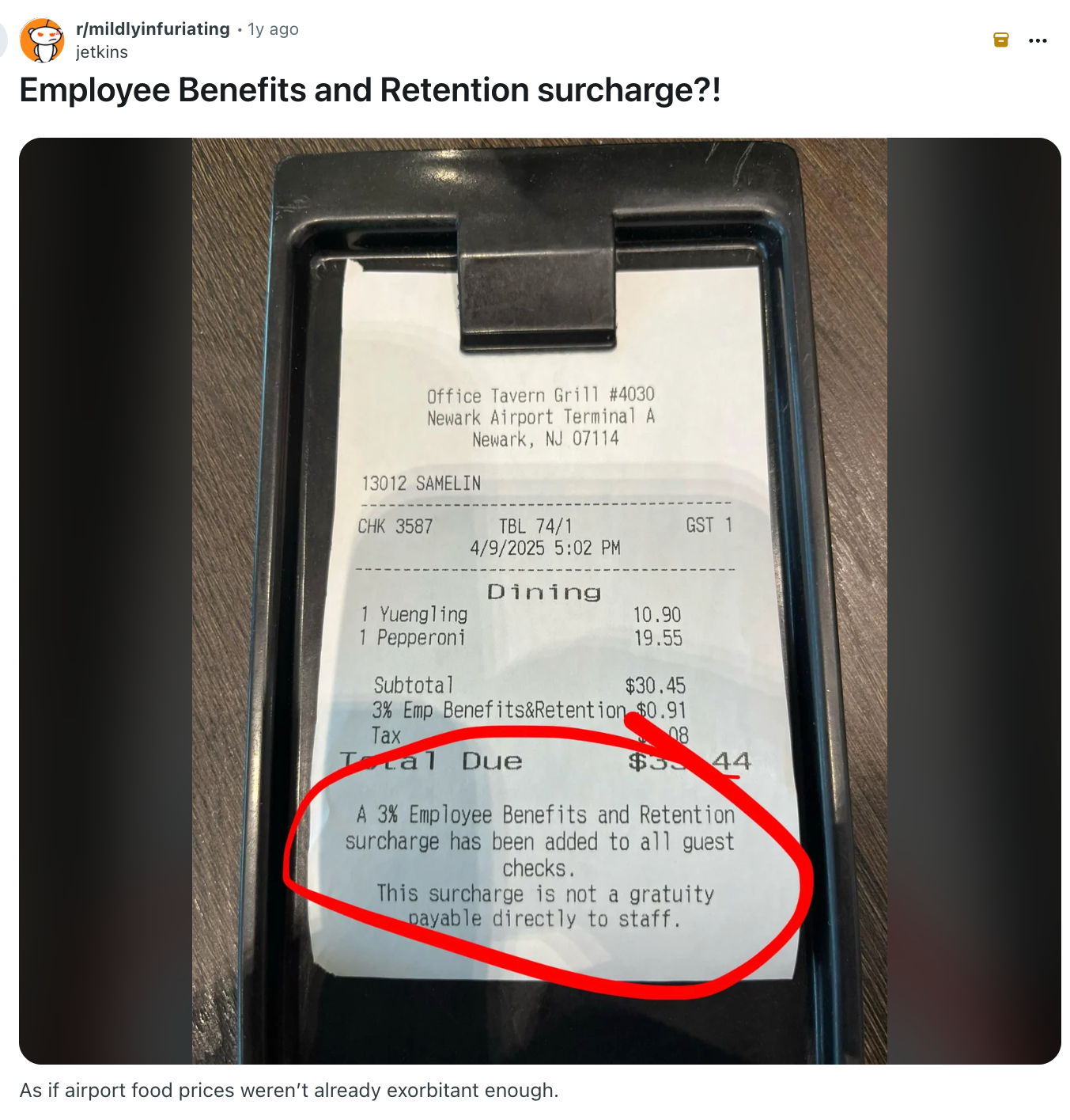 Why are these airport vendors slyly charging consumers for “employee benefits”?