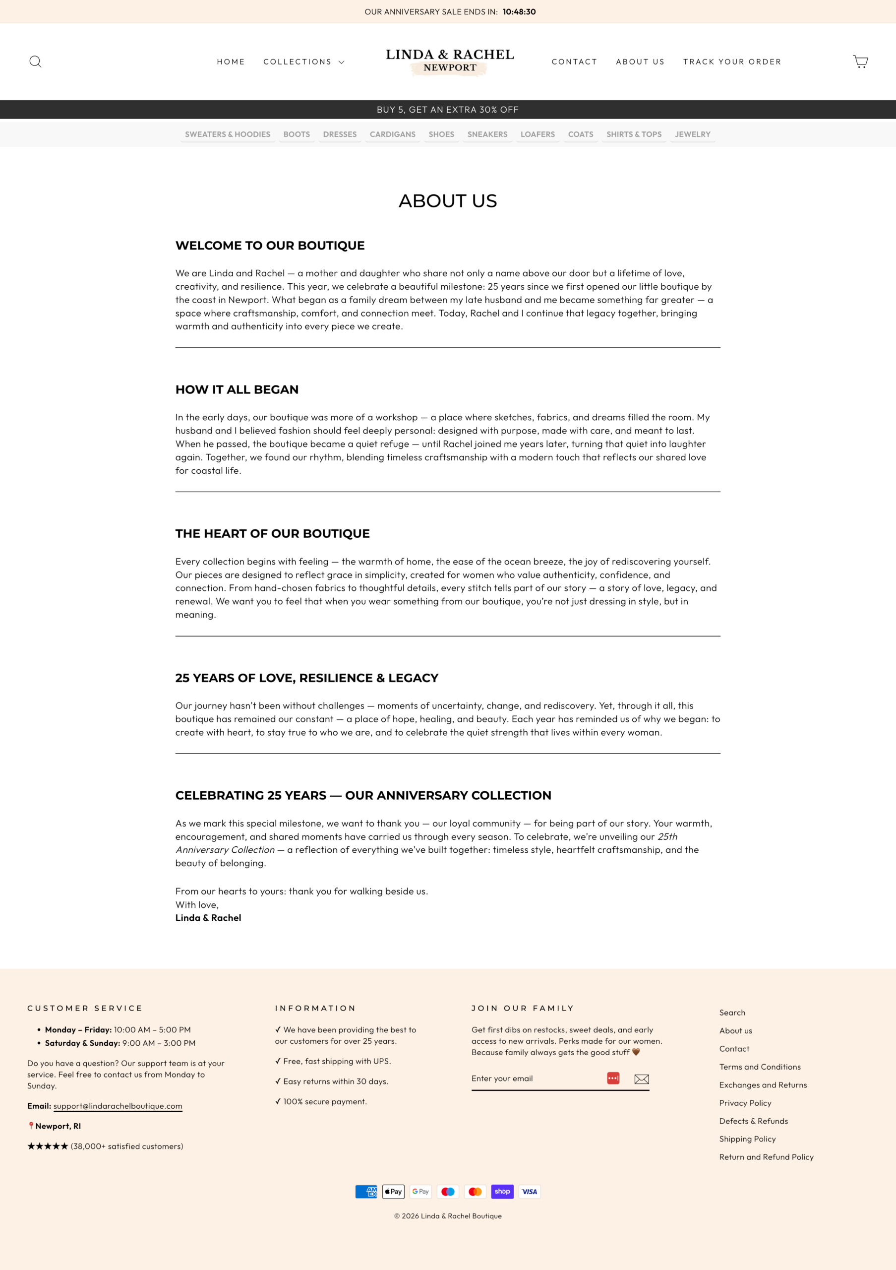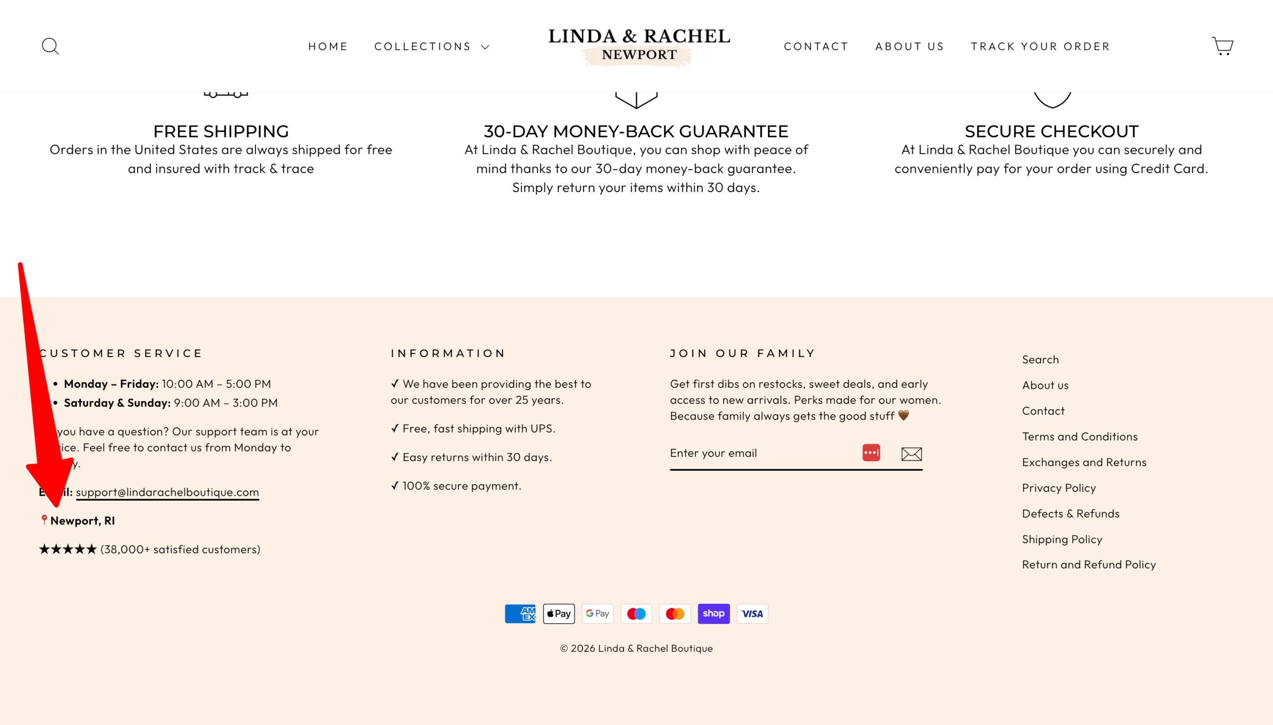For starters, there is no business in Rhode Island registered under the name Linda & Rachel and no specific address for the store provided on its website. In lieu of these details, the site vaguely lists the shop’s location as “Newport, RI,” while suspicious-looking Facebook ads depict a physical store that seemingly exists beyond the reach of public records.