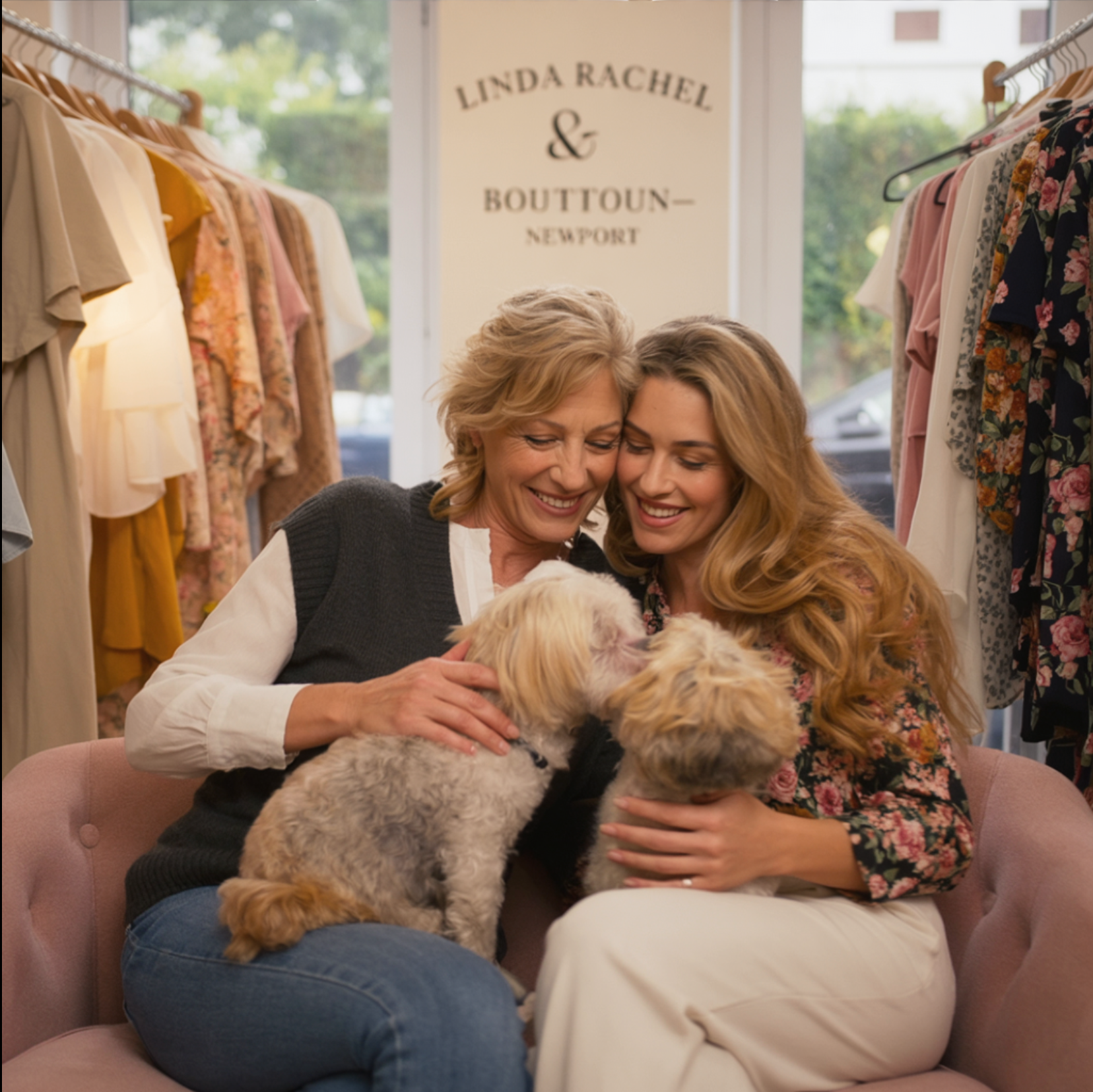 Photos of mom (Linda) and daughter (Rachel) inside the Newport shop are featured throughout the store’s marketing.