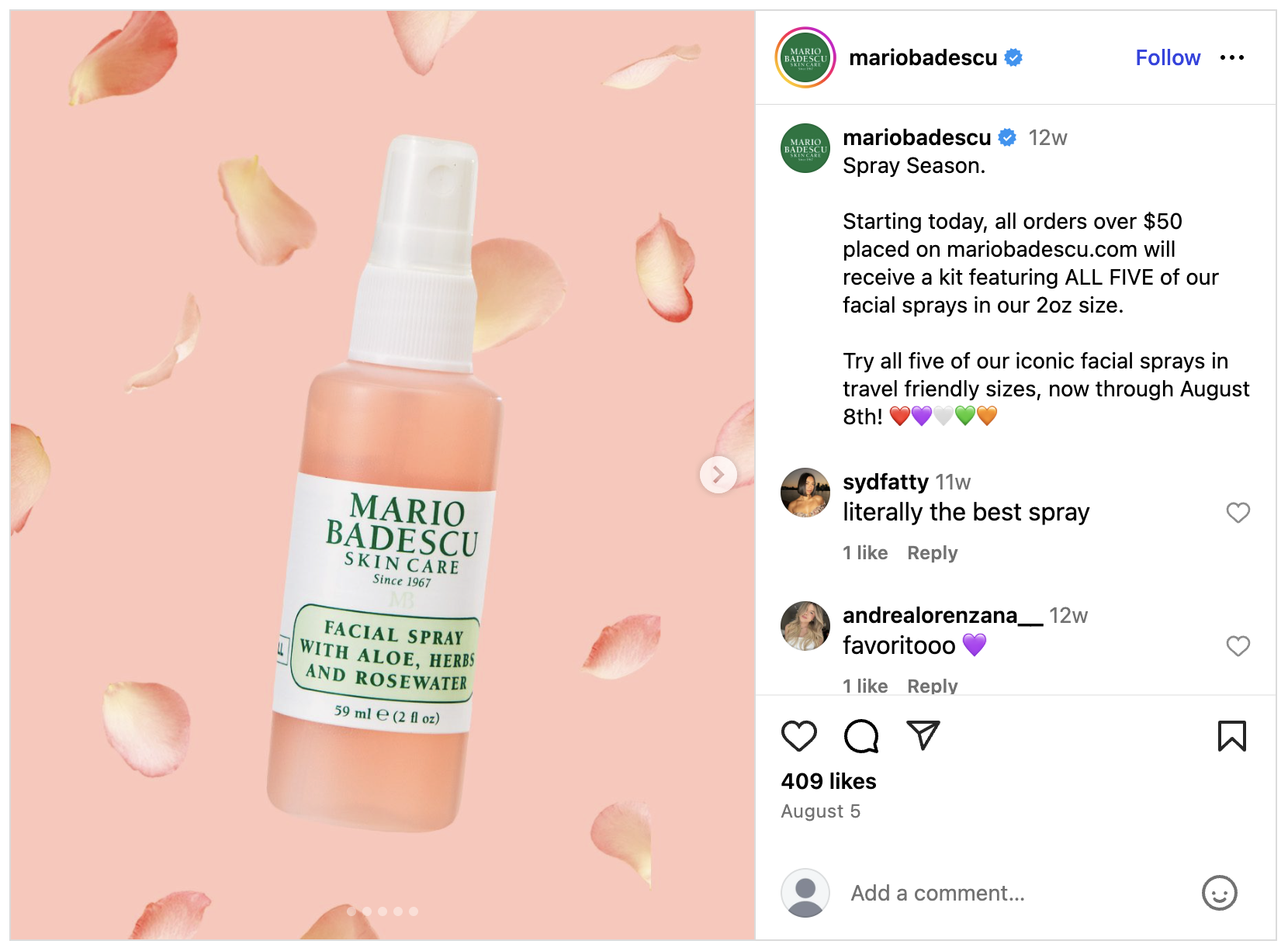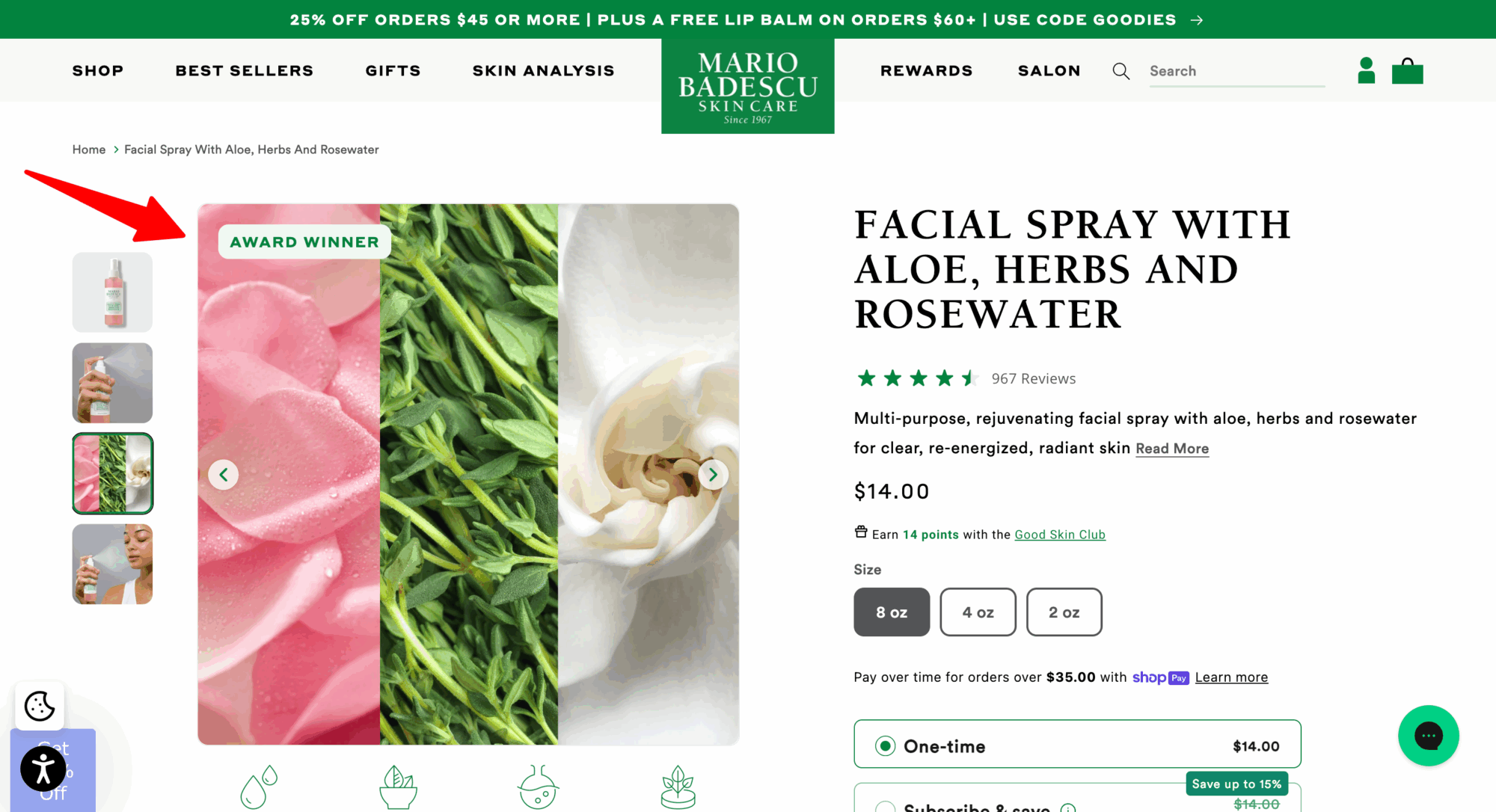 Yet this has not stopped Mario Badescu from showcasing rose petals in various product images promoting its “rosewater” facial spray: