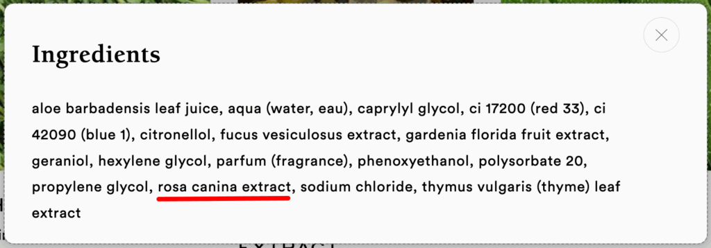 There’s just one problem, TINA.org discovered after receiving a tip from a reader: Mario Badescu’s spray doesn’t contain rosewater. Rather, it is made with “rosa canina extract,” according to the ingredients list on the product page.