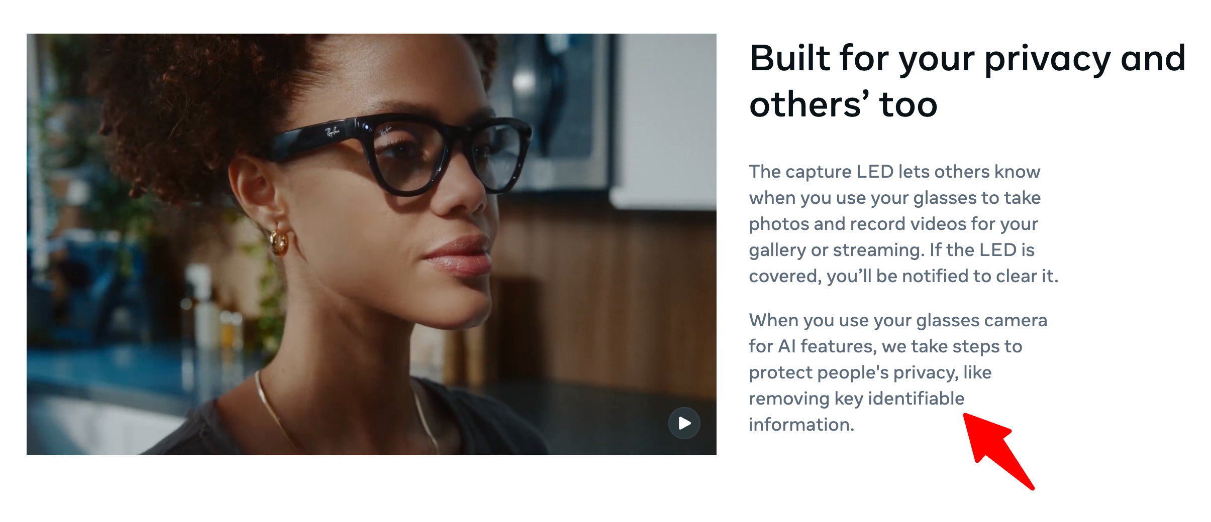 “You’re in control of your data and content,” Meta says on its website, adding that the AI glasses are “built for your privacy and others’ too.”