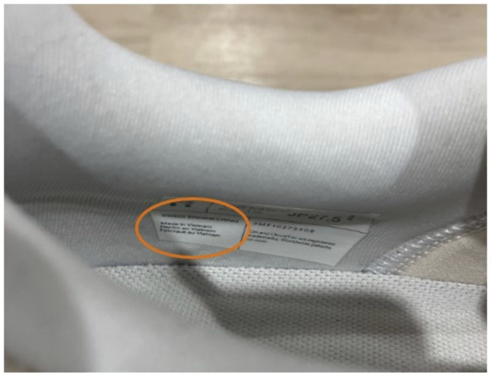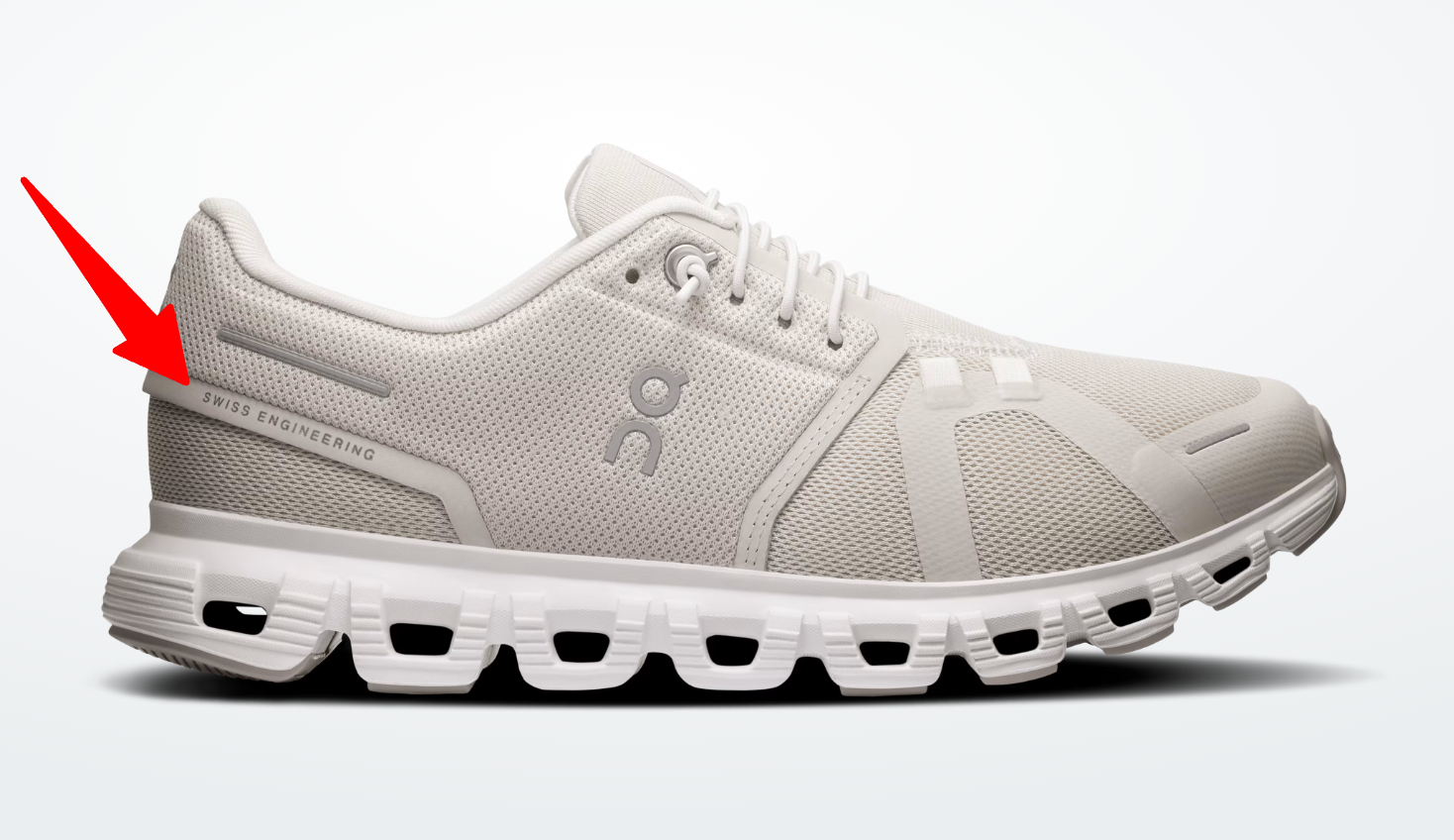 According to the complaint, On discloses accurate country-of-origin information inside the shoes – if you can find it.