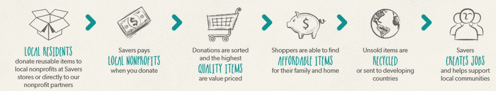 Savers secondhand thrift shops advertise that consumers can donate items to local charities at its stores and the charities will benefit with payments from Savers. Sounds very convenient and who doesn’t want to do something nice for a local charity, right?
