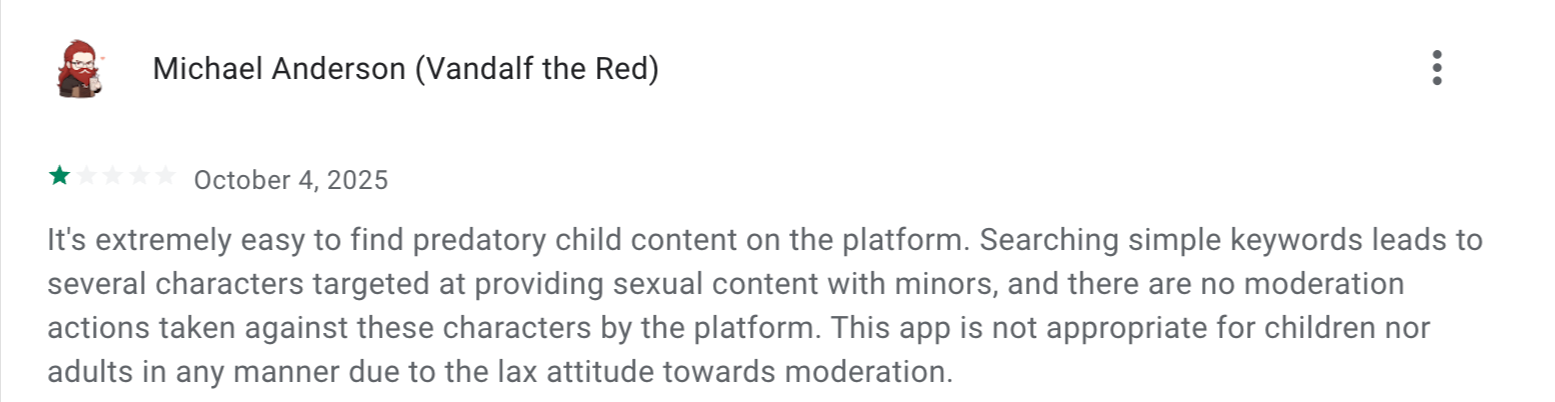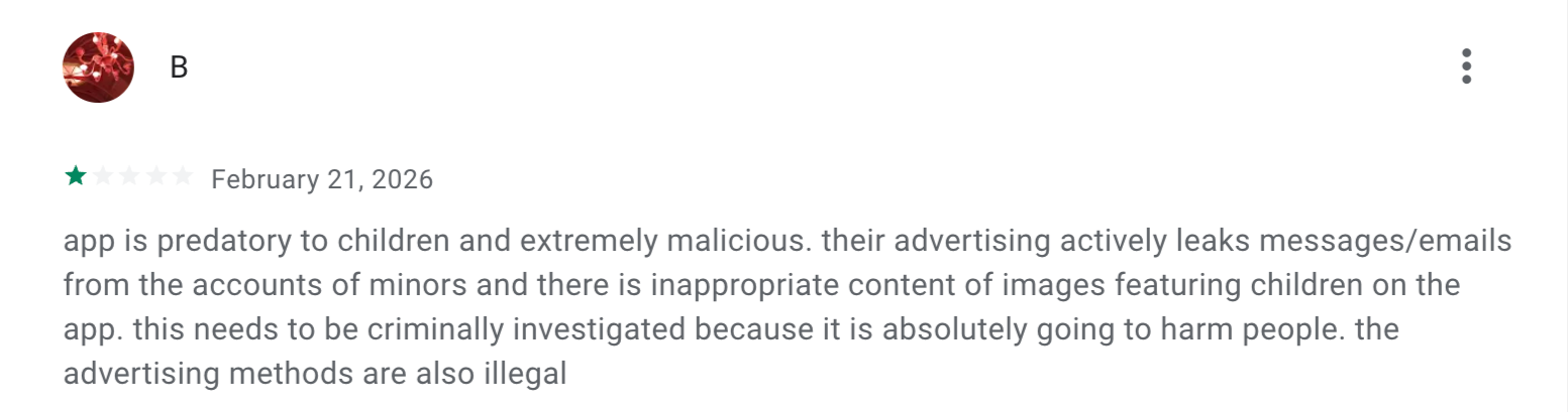 Meanwhile, consumers report on the Google Play Store that some Shapes generate sexual content involving minors.