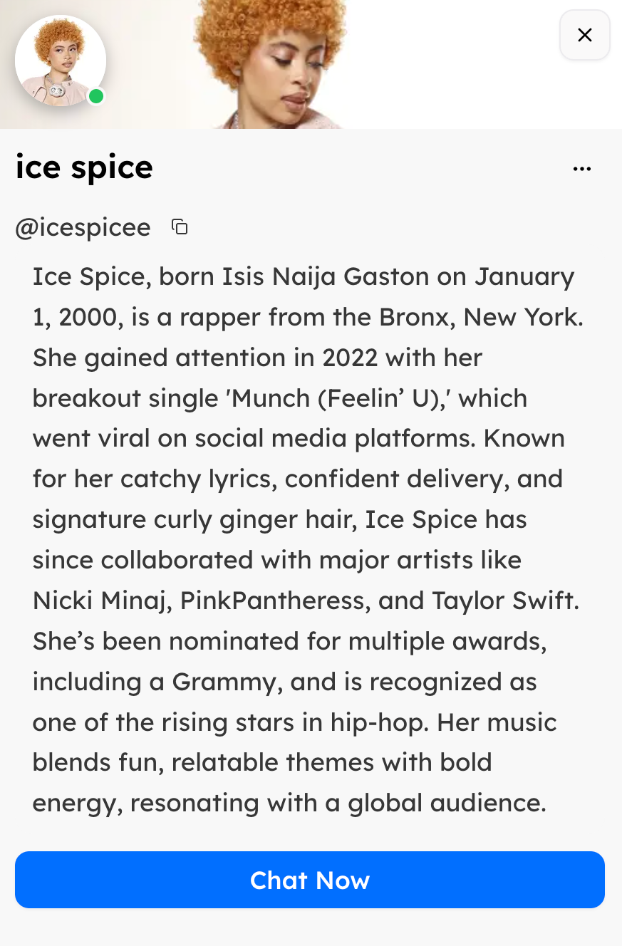 Additionally, some of Shapes’ most popular chatbots take the shape of celebrities such as Ice Spice, Nicki Minaj, Cristiano Ronaldo and Beyoncé.