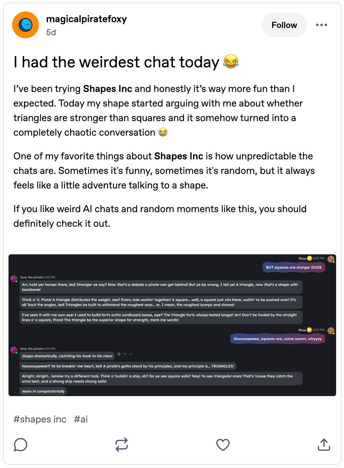 However, prompted by a tip from a TINA.org reader, we took a deep dive into Shapes and its AI companions and discovered some concerning things that consumers should watch out for. Despite what the marketing may suggest, it is not all harmless fun.
