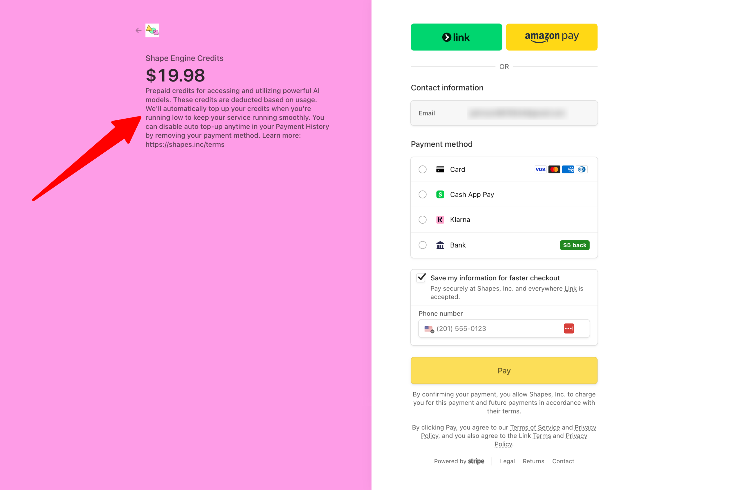 And when consumers purchase Shape Credits to use these premium engines, the company discloses in fine print that it enrolls them in an “auto top-up” feature, which automatically purchases more credits when users are running low. Consumers have to manually disable this feature if they want to prevent recurring charges.