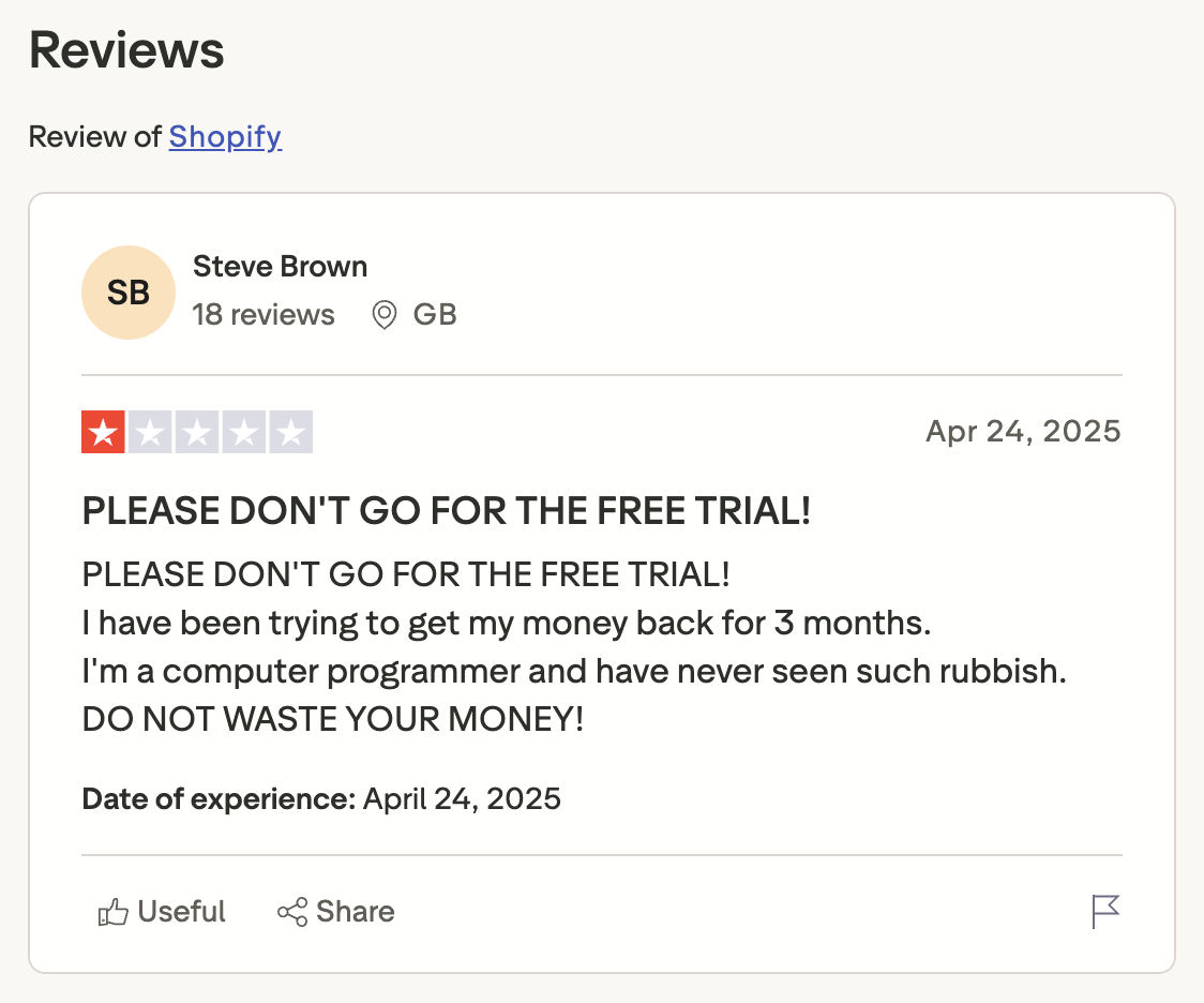 It’s no wonder Trustpilot and the BBB, from which the above complaints are taken, give Shopify a 1.3-star customer review rating and an F rating, respectively.