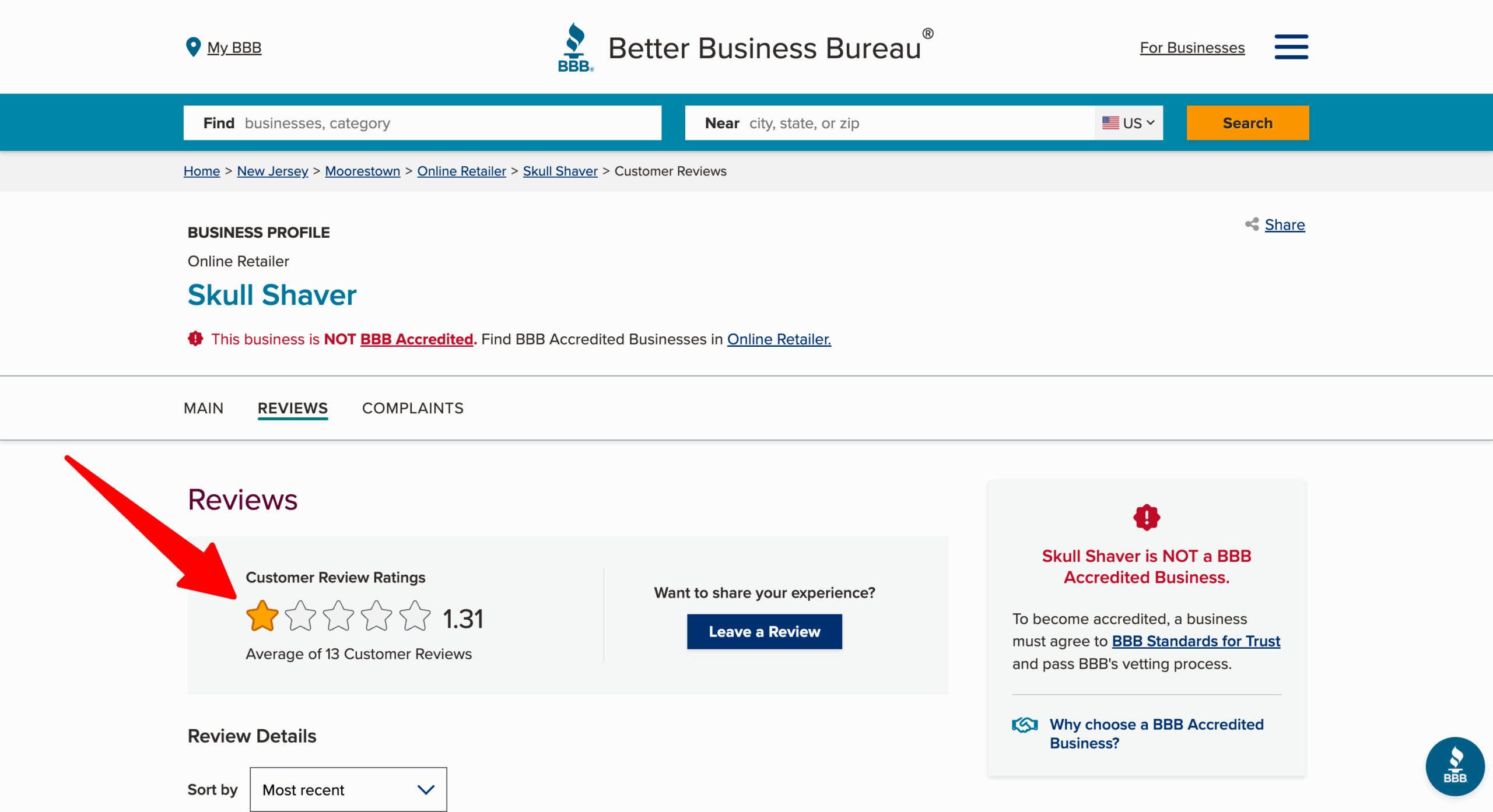 Another red flag? While Skull Shaver touts in its Facebook ads that it has more than 180,000 five-star reviews, its customer rating on Trustpilot is a paltry 1.4 stars and its average customer review rating on the BBB is even worse – 1.31 stars.