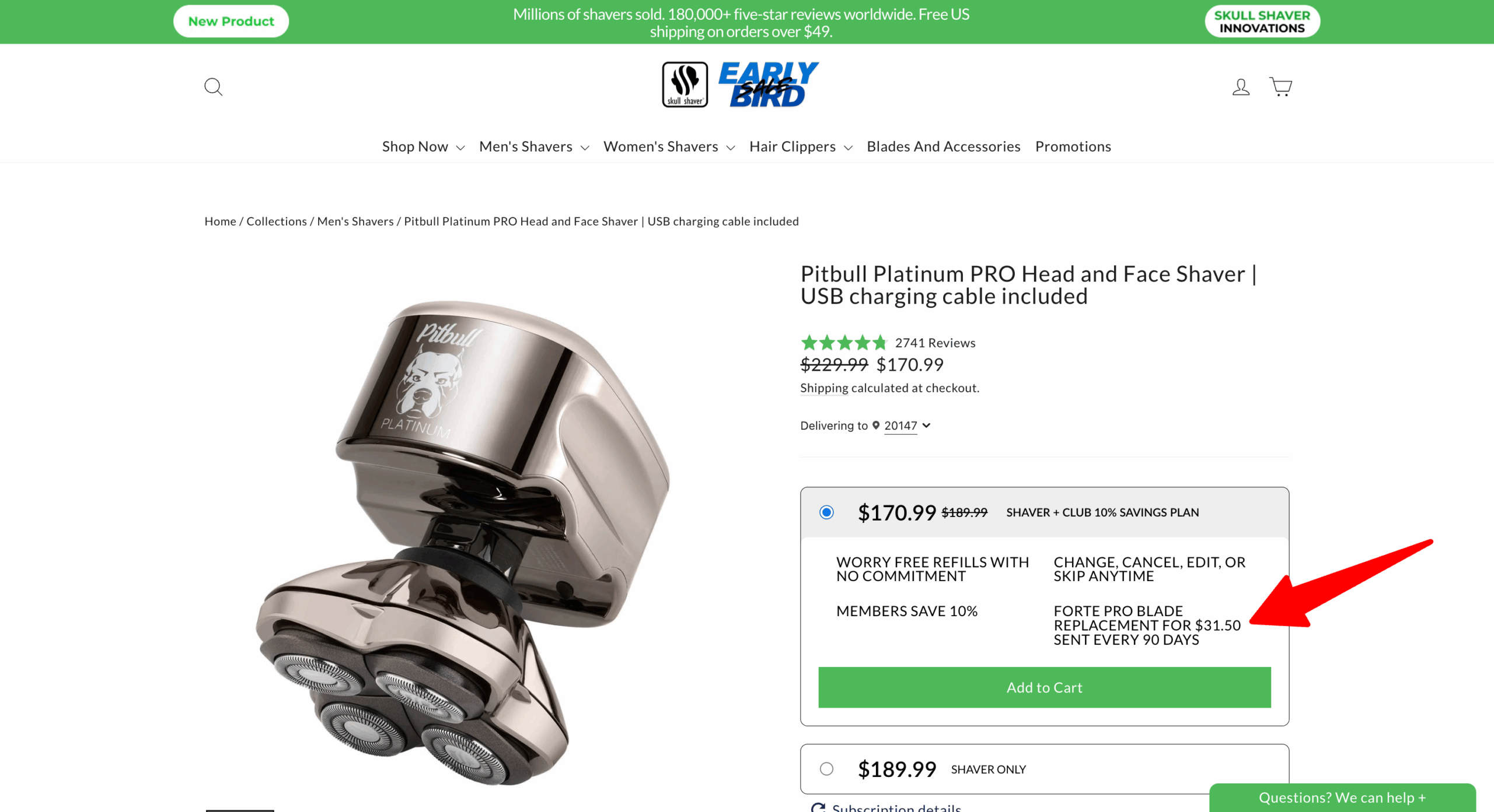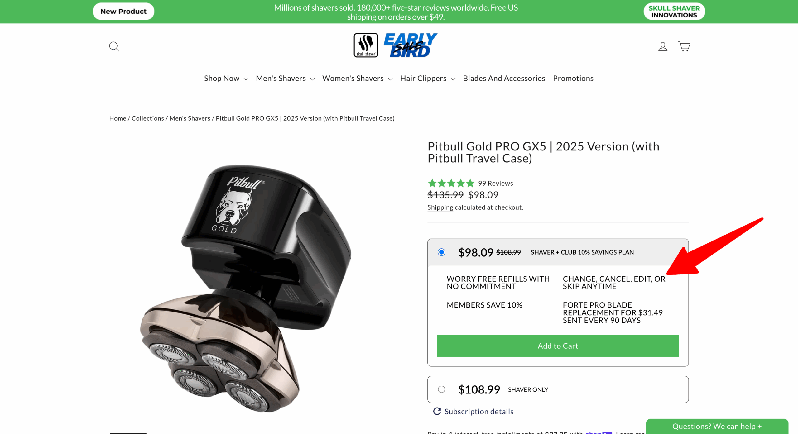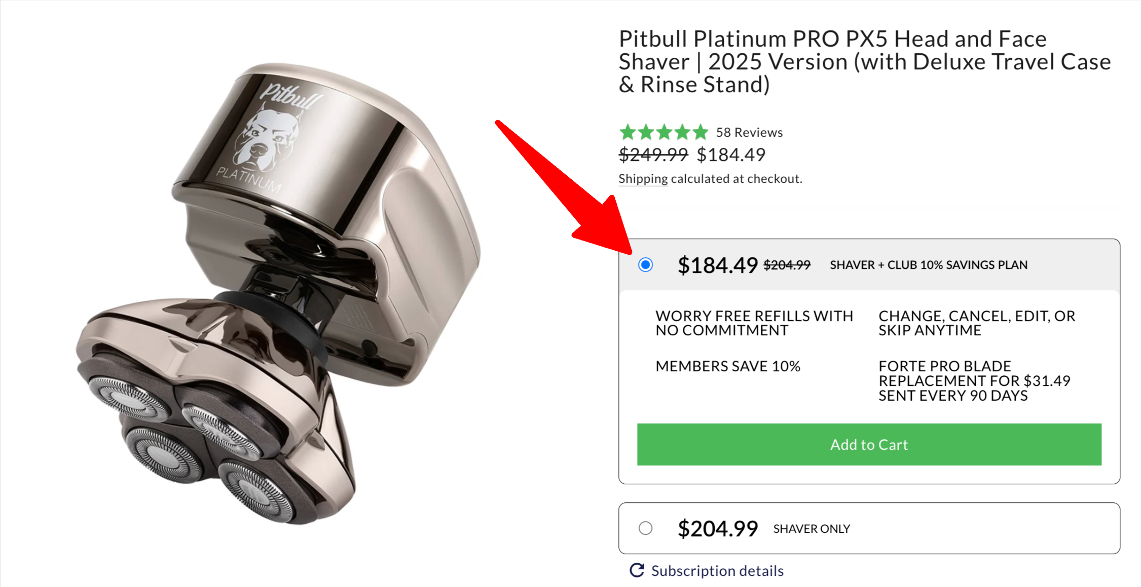 As shown above, without a subscription, consumers pay more for the shaver only.