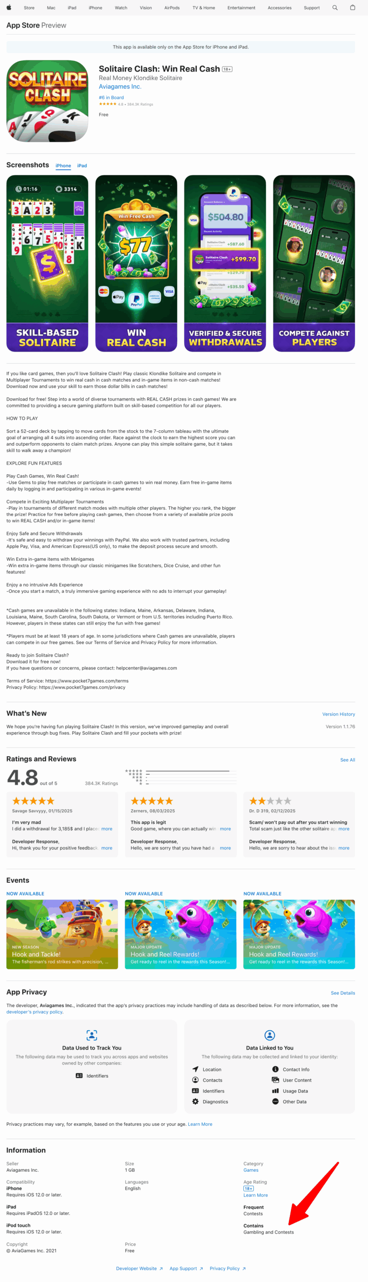 Also of interest is the fact that Avia, the game’s developer, is currently facing a class-action lawsuit alleging it falsely represents that users play games of skill against real people for money when they are actually playing games of chance against computer bots in “an unapproved gambling enterprise.” Solitaire Clash is one of the games named in the complaint.