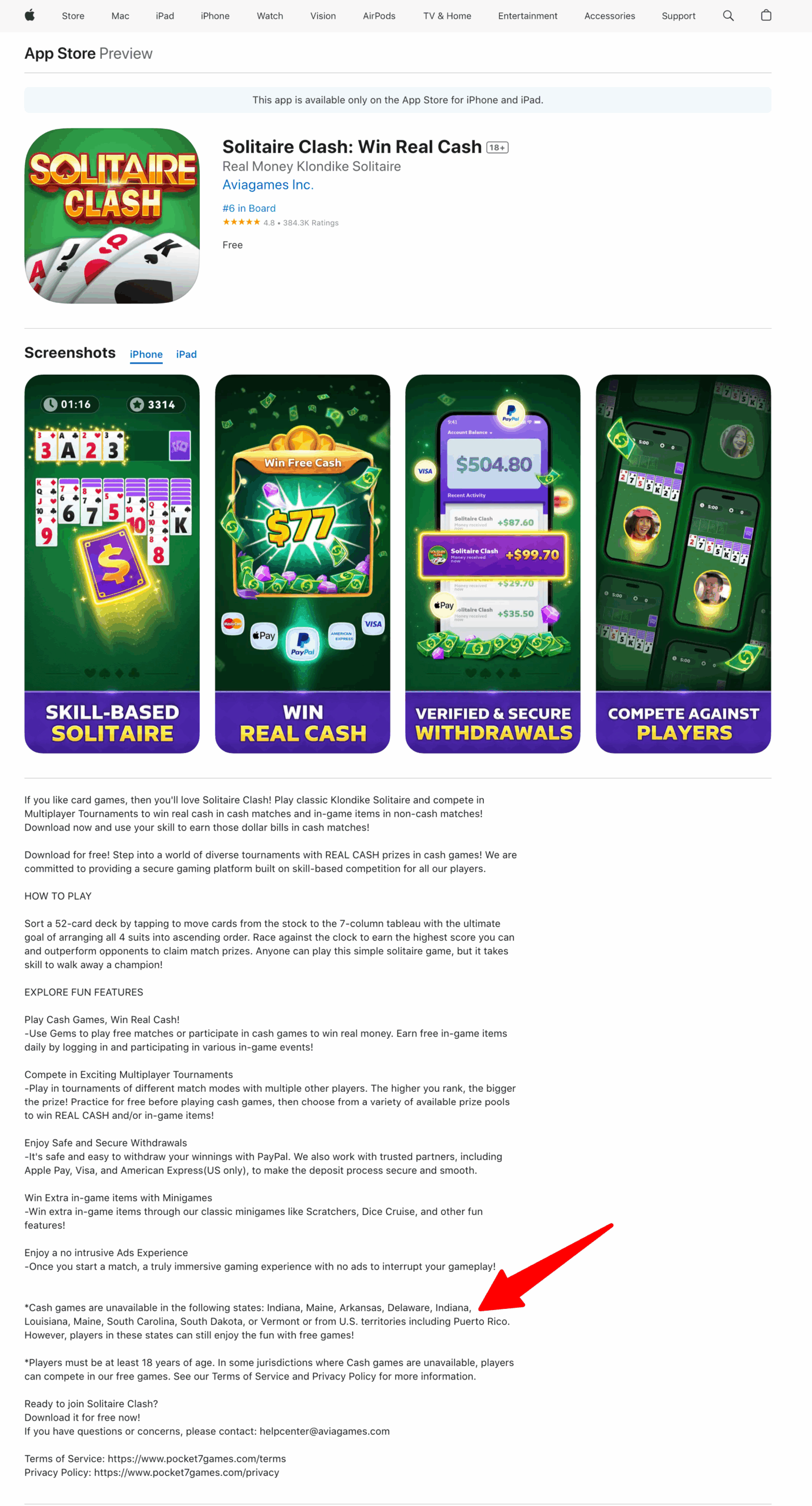 Of note, the company’s cash games are not available in Indiana, Maine, Arkansas, Delaware, Louisiana, South Carolina, South Dakota and Vermont (as well as U.S. territories including Puerto Rico). This may be because of state-specific laws and regulations regarding gaming, online cash competitions, prize-entry tournaments or even gambling, which is how the game is described on the Apple App Store.