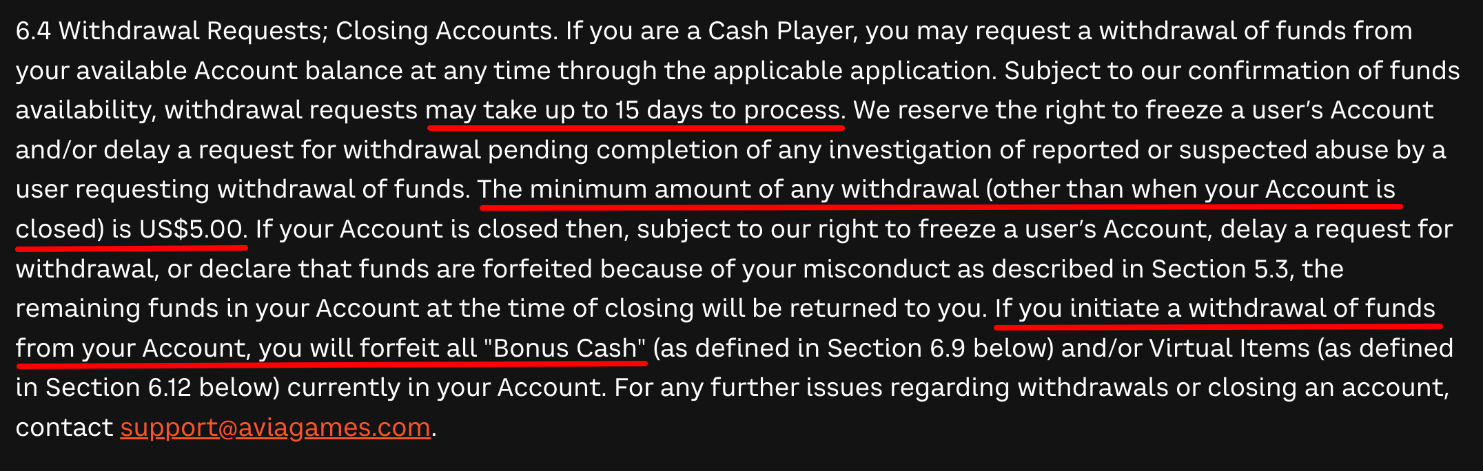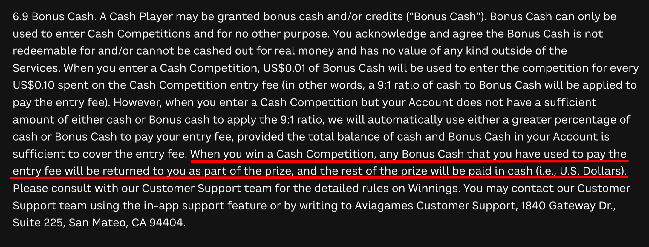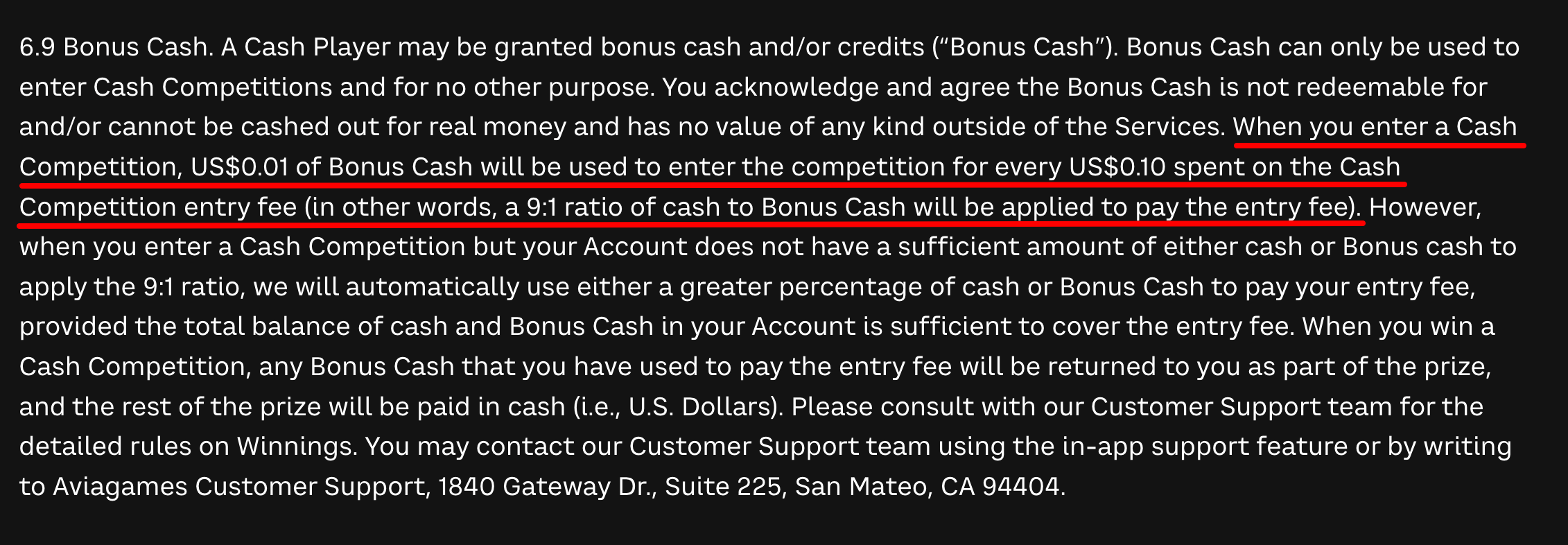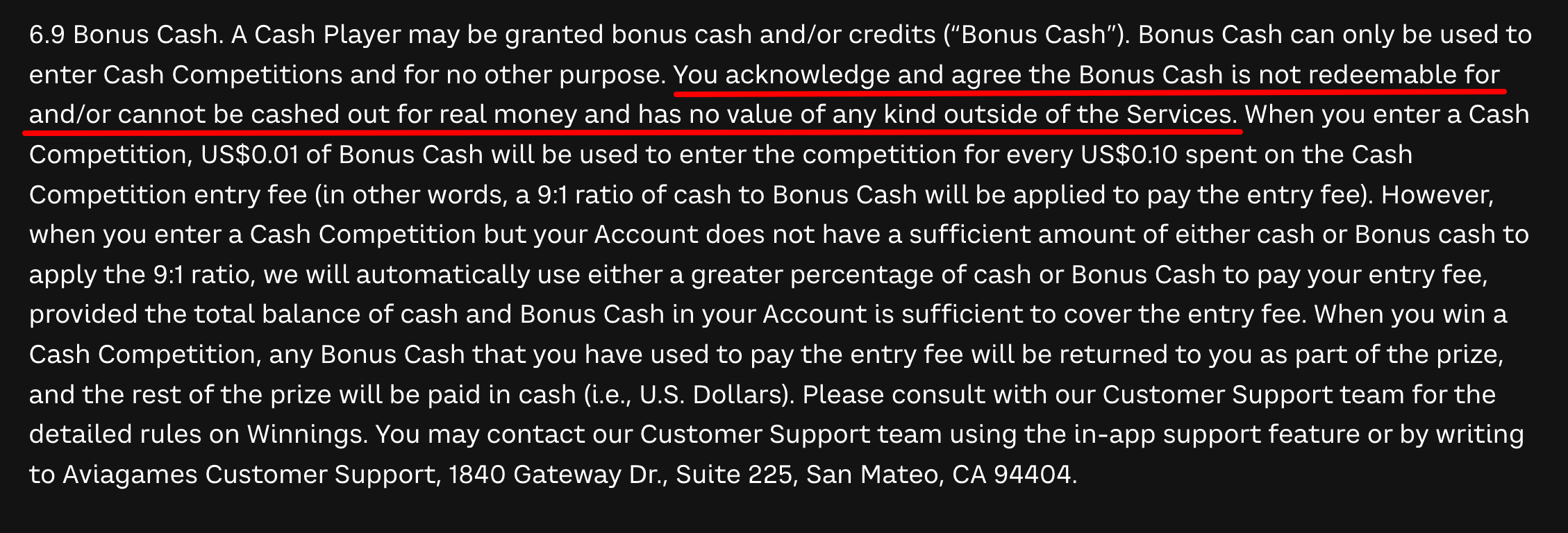 In response to a TINA.org request for comment, a spokesperson for Avia said the company has “clear guidance on our website, in-game Terms & Conditions, and FAQs explaining how Bonus Cash operates.”