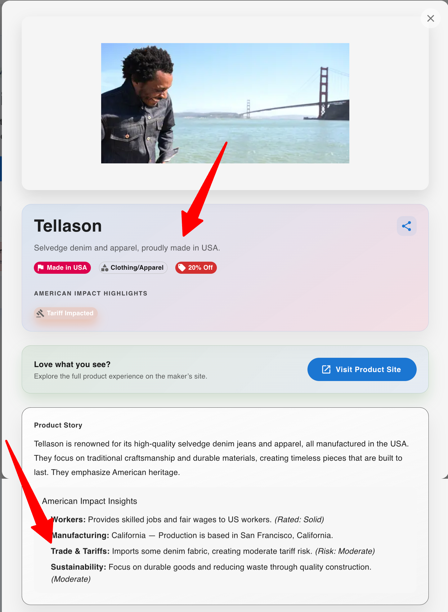 Tellason did not respond to a request for comment. After reaching out to Real American Deals, the website immediately removed Tellason from its Made in USA database.