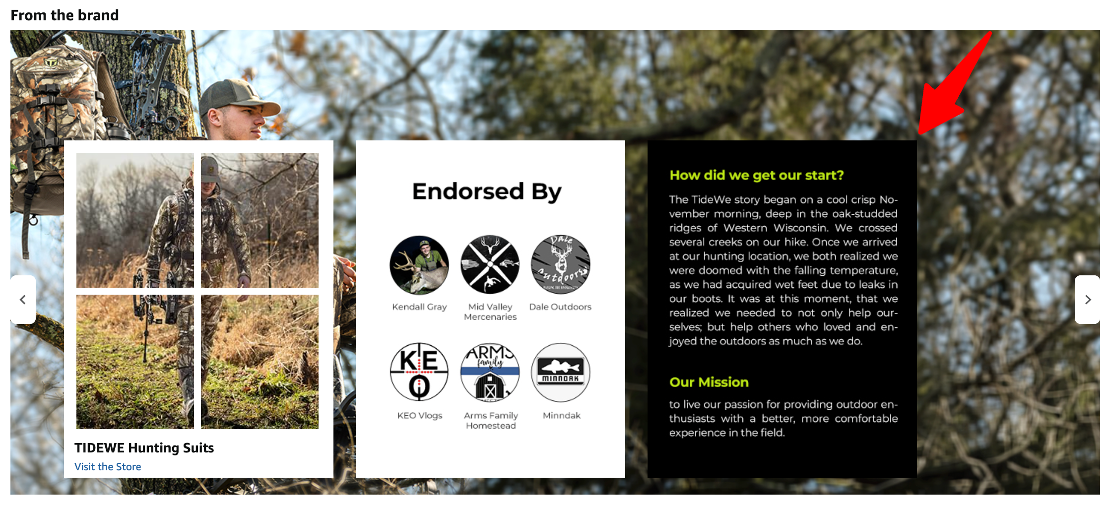 Versions of the origin story appear on the TideWe website and in the company’s Amazon listings for a variety of TideWe hunting gear.
