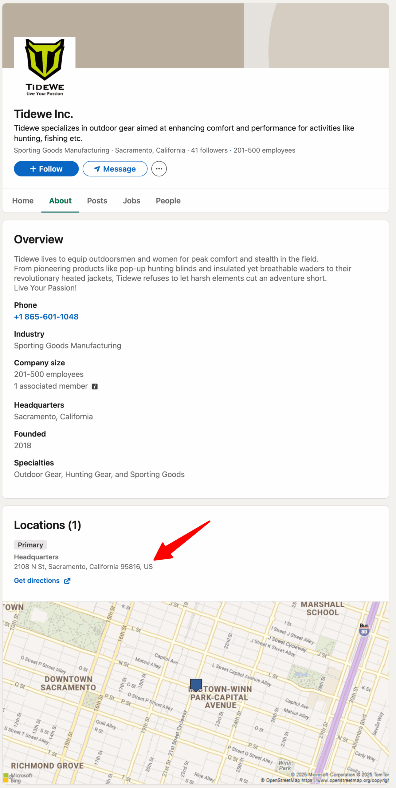 For starters, TideWe isn’t registered in its purported origin state of Wisconsin. It’s also not registered in California or in Tennessee, where some of the company’s social media accounts claim it is headquartered or based.