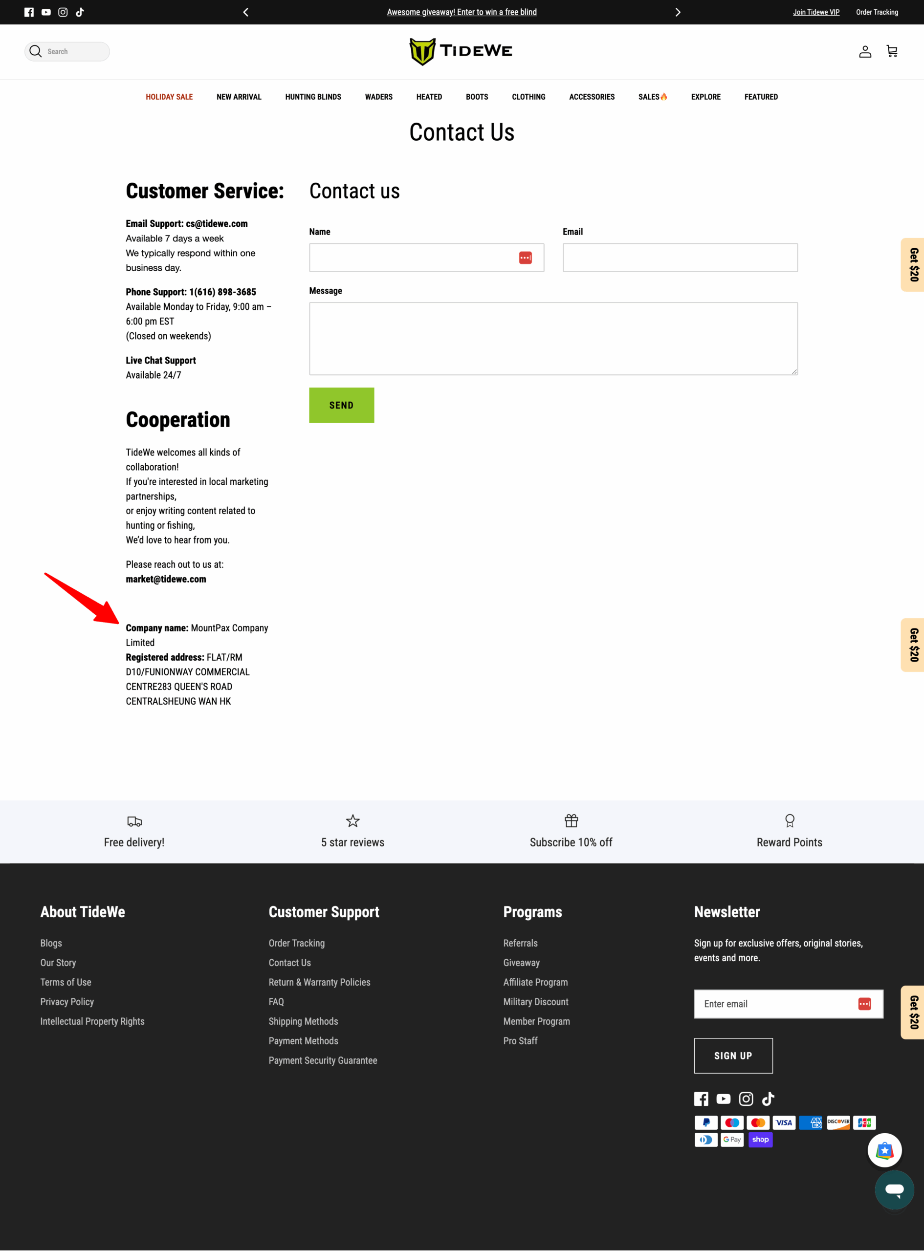 TideWe’s origin story is not the only marketing raising questions. Despite its claim to be the “No. 1 online hunting brand,” TideWe does not appear on several lists of the top hunting companies.