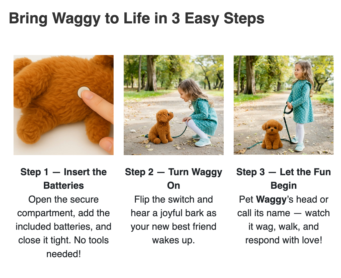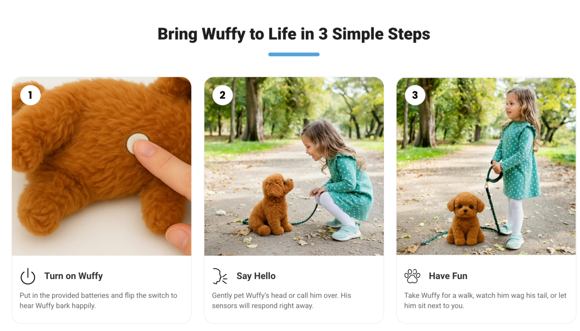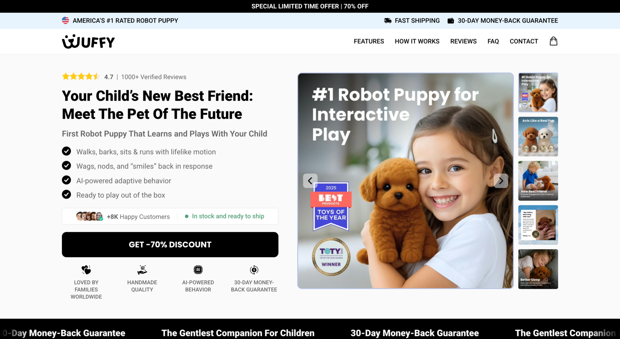 “This robotic puppy looks so real, it completely fooled my neighbor, who’s a veterinarian,” begins the grandfather narrator in a YouTube ad for Wuffy – a toy puppy that purportedly uses AI to play and bond with humans just like a real dog. The grandfather, who has gifted a Wuffy to his granddaughter, Emma, who is seen playing with Wuffy in the ad, continues: