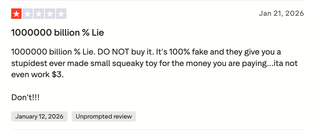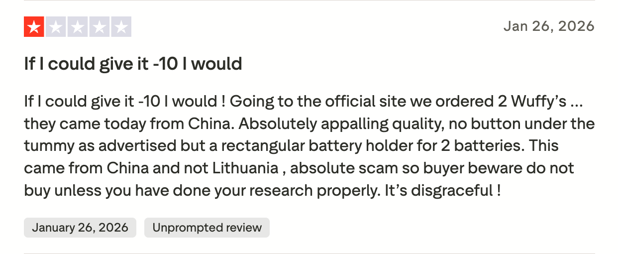 In fact, a multitude of consumers have complained on Getwuffy’s Trustpilot profile that Wuffy doesn’t perform as advertised and is more like a “small squeaky toy” than an AI-powered robot puppy (while also noting issues with the company’s return process – more on this to come).