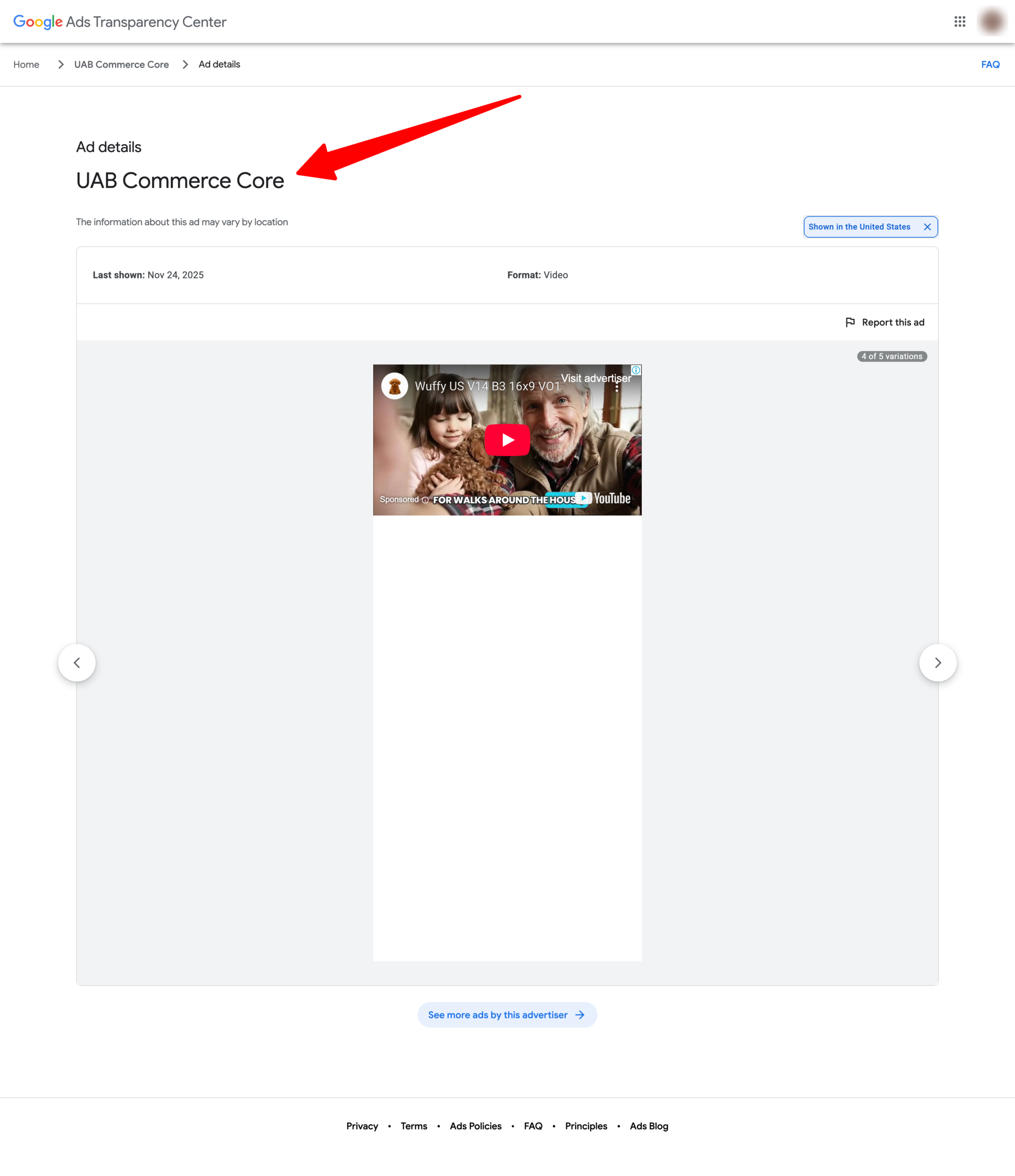 According to Google, which owns YouTube, the company responsible for the Wuffy ad is UAB Commerce Core, a Lithuanian company that advertises a range of different products and has reportedly engaged in fraudulent clickbait before. The company has also been the subject of multiple ASA investigations in the U.K. for misleading YouTube ads.